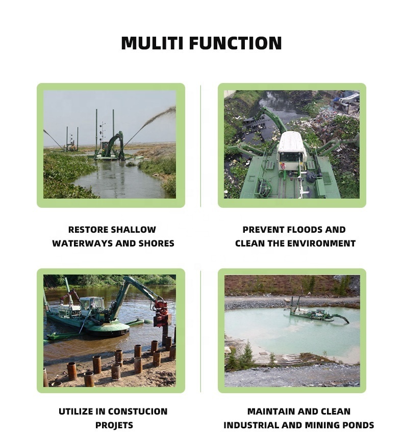 - असाधारण रूप से बहुमुखी प्रतिभा - बंद, संकीर्ण, उथले या अत्यधिक प्रदूषित जलमार्गों में कटर सक्शन, खुदाई, पकड़, ढेर, खरपतवार, और बाधा सफाई करता है