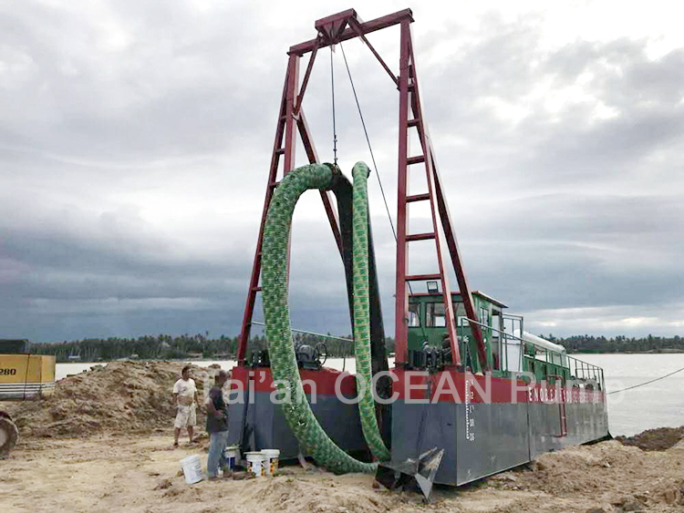 La nostra aspiratrice di sabbia è progettata per recuperare materiali sottomarini da profondità considerevoli e può estrarre la sabbia da sotto i sovraccarichi di argilla.Equipaggiato con una pompa d'acqua ad alta pressione e una potente pompa di aspirazione della sabbiaLa pompa d'acqua genera getti d'acqua ad alta velocità per interrompere gli strati di sabbia, mentre la pompa di aspirazione trasporta efficacemente i materiali attraverso i tubi di scarico..
