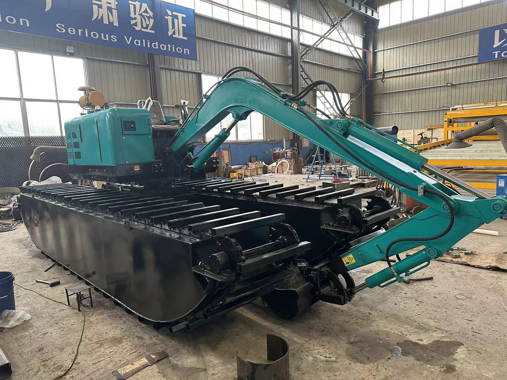 | Highlight | Q355B Reinforced Steel Amphibious Dredger,40Cr Hard wearing Steel Swamp Excavator,Environmental Shot Blasting Technology Floating Crawler Excavator |